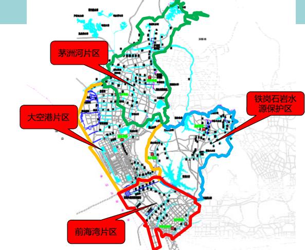該項目位于寶安區(qū)前海灣片區(qū),地理位置屬于新安和西鄉(xiāng)街道,流域劃分屬于珠江口水系,面積約為117km2。該項目包含21個子項目,涉及面廣,包含河道整治、雨污分流、黑臭水體、防洪排澇(含深層隧道)、管網(wǎng)清淤和修復(fù)類項目。項目階段包含規(guī)劃統(tǒng)籌、工可和初設(shè)階段。該項目總投資約56億元,勘察設(shè)計費共3071萬元(其中勘察費約1200萬元,設(shè)計費約1871萬)。我司市政設(shè)計二院給排水組從2016年4月起,參與寶安區(qū)前海灣片區(qū)水環(huán)境整治評估咨詢工作,通過對該片區(qū)前期咨詢和設(shè)計成果的積累,已對該片區(qū)的水污染治理、管網(wǎng)及內(nèi)澇情況有了充分了解。