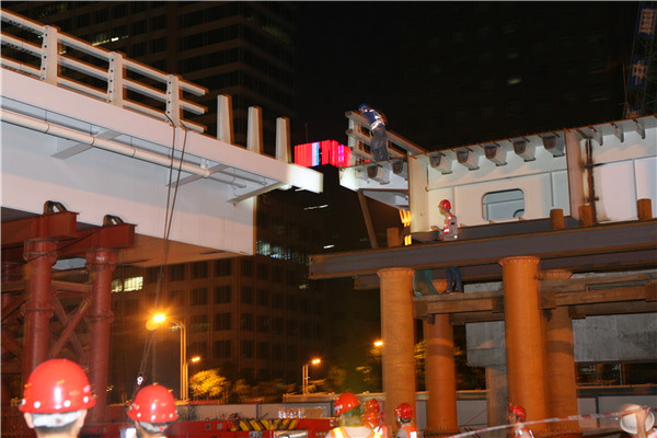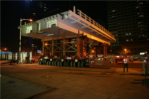 2017年9月22日至23日,國內(nèi)首架采用標(biāo)準(zhǔn)化SPMT技術(shù)施工的“深圳市崗廈北綜合交通樞紐工程—鋼便橋”架設(shè)成功。架設(shè)方案由我公司提出,完全符合業(yè)主方地鐵集團(tuán)對于降低施工現(xiàn)場對環(huán)境及交通影響的要求,中國中鐵第二工程局具體實施。