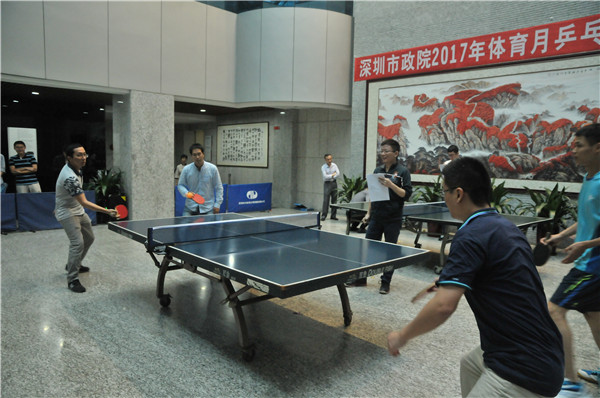 2017年11月14日下午,市政院2017年體育活動月乒乓球比賽在市政設(shè)計大廈主樓大堂精彩開戰(zhàn)。國球乒乓一直深得公司員工喜愛,今年的體育月乒乓球賽吸引了各部門眾多乒乓愛好者參與。參賽選手們激情滿懷,觀戰(zhàn)的同事們熱情高漲,助威聲、贊嘆聲此起彼伏,熱烈的氣氛洋溢在比賽現(xiàn)場。公司董事長陳宜言為比賽致辭,并與副總經(jīng)理張健君一起為比賽開球。副總經(jīng)理公司許華林也親臨比賽現(xiàn)場為運動員們加油。