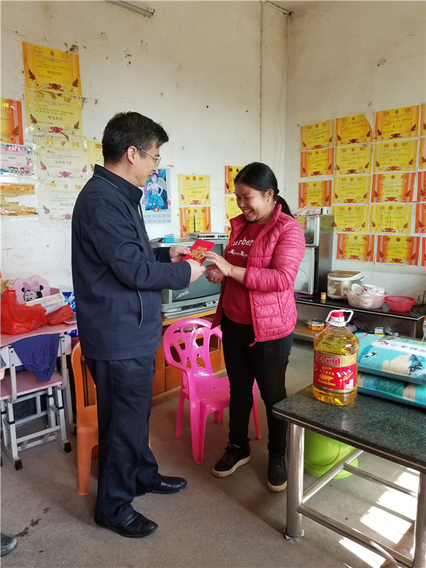 黨委書記、董事長陳宜言一行在貧困戶家庭走訪慰問中,詳細詢問、了解了扶貧戶的身體狀況、家庭收支和子女教育等方面情況,真切感受他們的疾苦冷暖與愿望心聲,每到一處,為扶貧戶送去慰問物資和慰問金,鼓勵他們發(fā)揚自力更生、艱苦奮斗的精神,增強脫貧致富的信心和決心,爭取早日脫貧致富。
