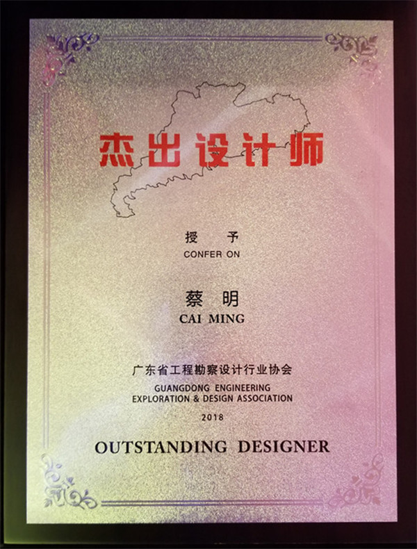 “廣東省杰出工程勘察設(shè)計師”獎牌