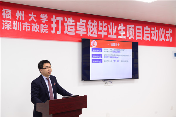 張星副校長對本次參會的深圳市政院領(lǐng)導及企業(yè)導師表示感謝。他指出,校企合作打造卓越畢業(yè)生對校企雙方實現(xiàn)人才培養(yǎng)計劃具有重要意義。工科教育最重要的是實踐教育,打造卓越畢業(yè)生項目是“新工科”中很好的一個實踐。學生要珍惜這次機會,努力在畢業(yè)設(shè)計中取得優(yōu)異的成績,并預祝項目取得圓滿成功。