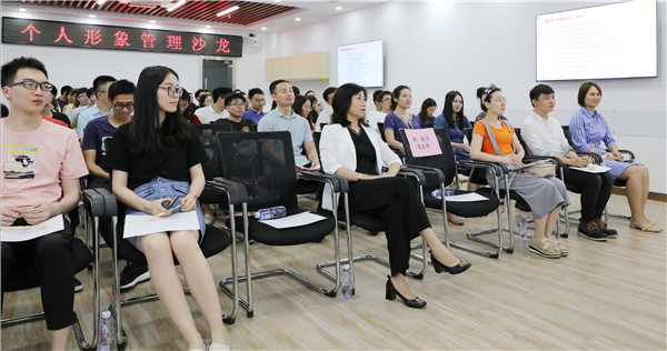 在“快”時(shí)代的背景下,一個(gè)人的形象表現(xiàn)已成為人際交往中的第一張名片。掌握好個(gè)人形象管理能夠?yàn)槁殘?chǎng)和社交加分。為進(jìn)一步提升公司員工的個(gè)人形象管理能力,6月18日晚,由公司團(tuán)委主辦的主題活動(dòng)——如何“型”之有效個(gè)人形象管理沙龍?jiān)谑姓O(shè)計(jì)大廈主樓一樓報(bào)告廳舉行。本次沙龍活動(dòng)特邀深圳地鐵運(yùn)營集團(tuán)高級(jí)禮儀培訓(xùn)師兼禮儀隊(duì)隊(duì)長代云娟老師擔(dān)任主講嘉賓,吸引了公司各部門共110余名同事到場(chǎng)參加。