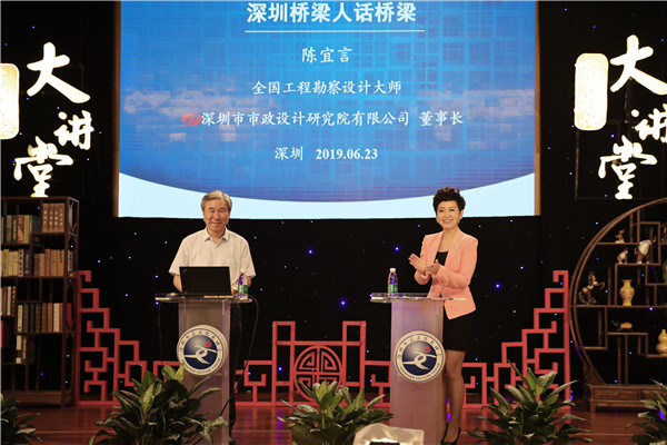 2019年6月23日,公司董事長陳宜言大師應(yīng)深圳市委宣傳部、深圳市社科聯(lián)聯(lián)合邀請做客深圳市民文化大講堂,在深圳圖書館五樓報(bào)告廳為市民朋友作了一場題為《深圳橋梁人話橋梁》公益講座。
