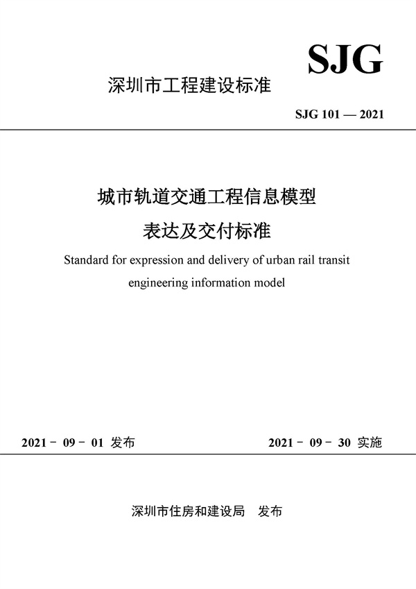 9月1日,深圳市政院與深鐵建設(shè)牽頭編制的《城市軌道交通工程信息模型表達(dá)及交付標(biāo)準(zhǔn)》(SJG 101-2021)、《城市軌道交通工程信息模型分類和編碼標(biāo)準(zhǔn)》(SJG 102-2021)兩本地方標(biāo)準(zhǔn)正式發(fā)布,自2021年9月30日起生效實施。