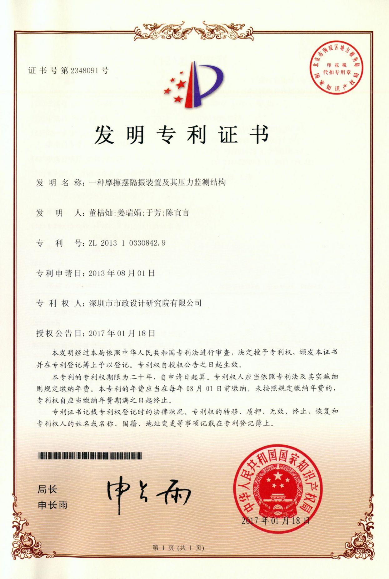一種摩擦擺隔振裝置及其壓力監(jiān)測結構
